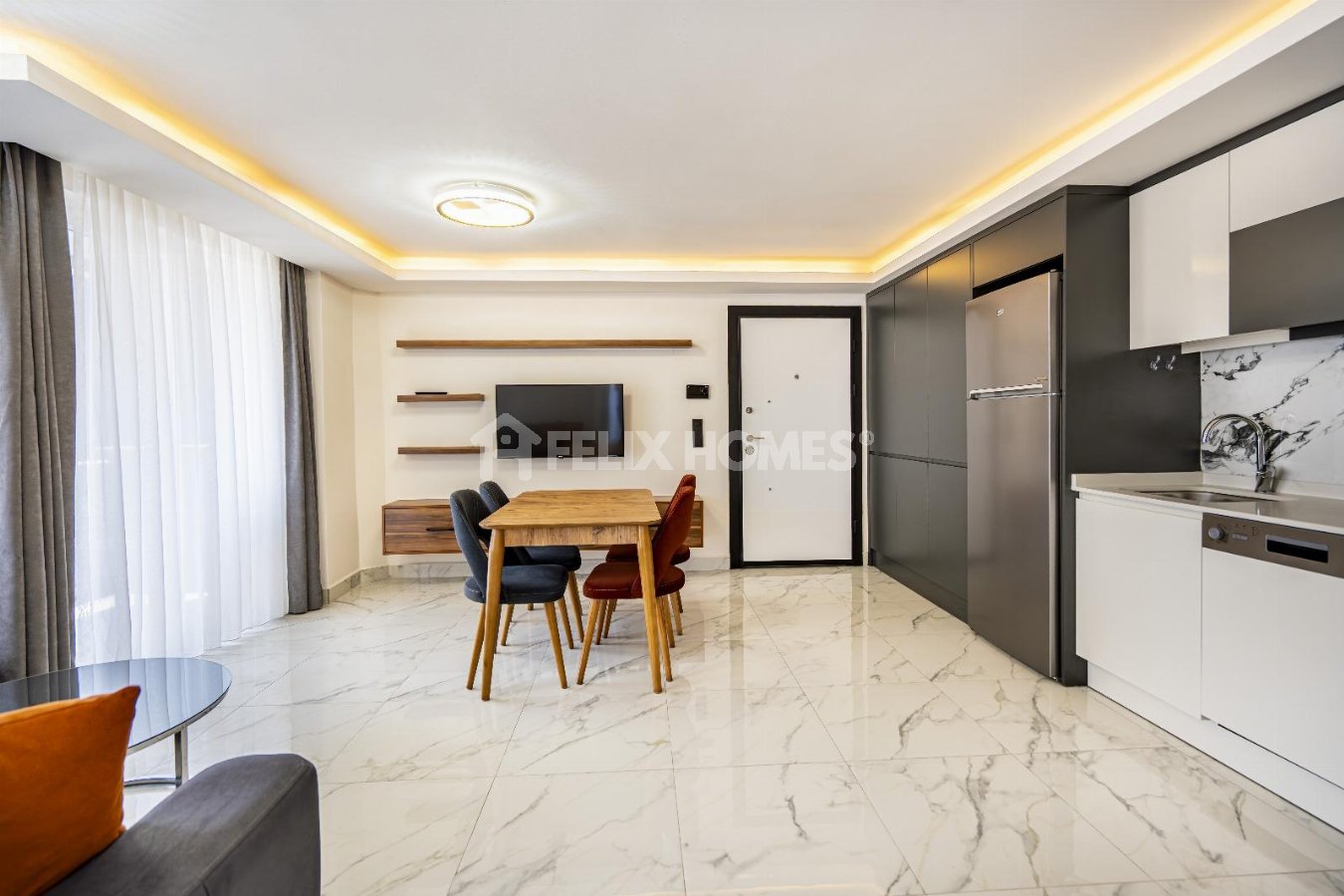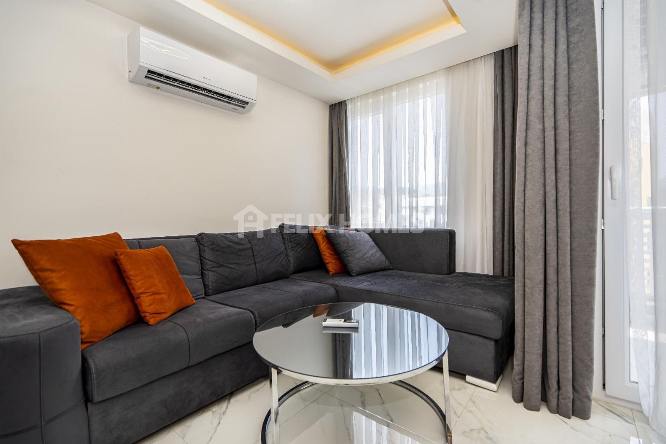 Discover this stylish 1+1 apartment in the popular Elite City 1 residence in Alanya, just 350 meters from the sea. Located on the 6th floor, this fully furnished 65 m² apartment offers comfortable living with two balconies, a modern bathroom, and a bright, airy layout. The complex features a large swimming pool with aquapark, children’s pool, landscaped garden with BBQ area, fitness center, sauna, and a relaxing lounge area. Residents also benefit from 24/7 security, a caretaker, security cameras, a children’s playroom, generator, elevator, and central satellite system. Perfect for permanent living, holidays, or investment in one of Alanya’s most desirable areas — offering a blend of comfort, convenience, and seaside lifestyle.