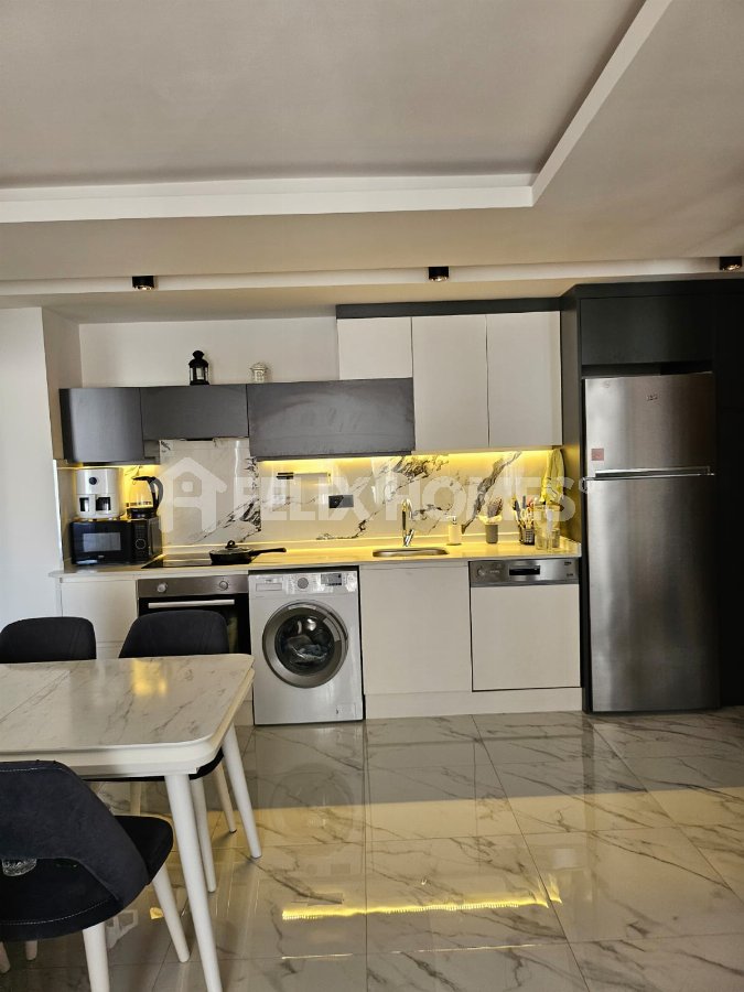 Discover this elegant 2+1 furnished apartment located in the sought-after Elite City 1 Residence in Alanya city center. Situated on the 5th floor, this 85 m² apartment features two balconies and two bathrooms, offering a spacious and comfortable living environment just 350 meters from the beach. Perfect for both permanent living and holiday stays.