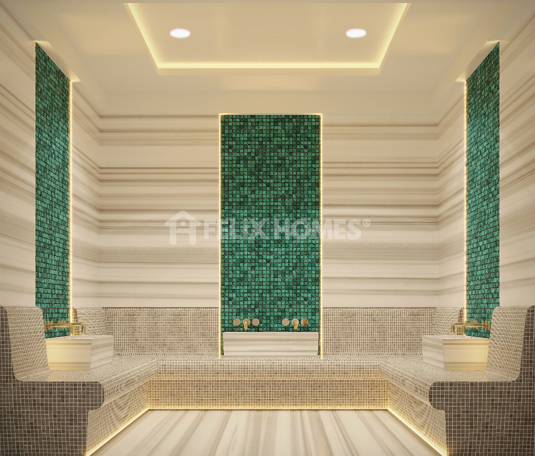 Residents will enjoy 5-star hotel-level infrastructure and amenities, including indoor and outdoor swimming pools, a traditional Turkish hamam, sauna, steam room, salt room, and shock room. The landscaped garden with walking paths creates a peaceful atmosphere, while additional facilities such as a private coworking space, laundry room, BBQ and outdoor lounge areas, children’s playground, outdoor parking, and 24-hour security with professional site management ensure maximum comfort and safety.