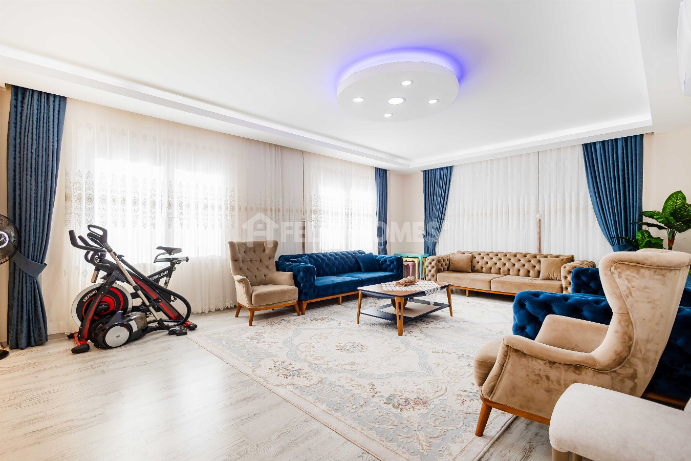 This spacious 3+1 apartment for sale is located in the well-maintained Saray Park II complex in Hasbahçe, Alanya. The property is suitable for residence permit and Turkish citizenship applications, making it an excellent option for both families and investors.