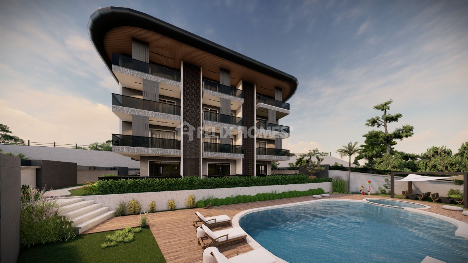 This luxury 3+1 duplex apartment for sale is located in the exclusive Zeha Deluxe complex in Büyükhasbahçe, Alanya. The property is eligible for Turkish citizenship, making it an excellent choice for both family living and long-term investment.