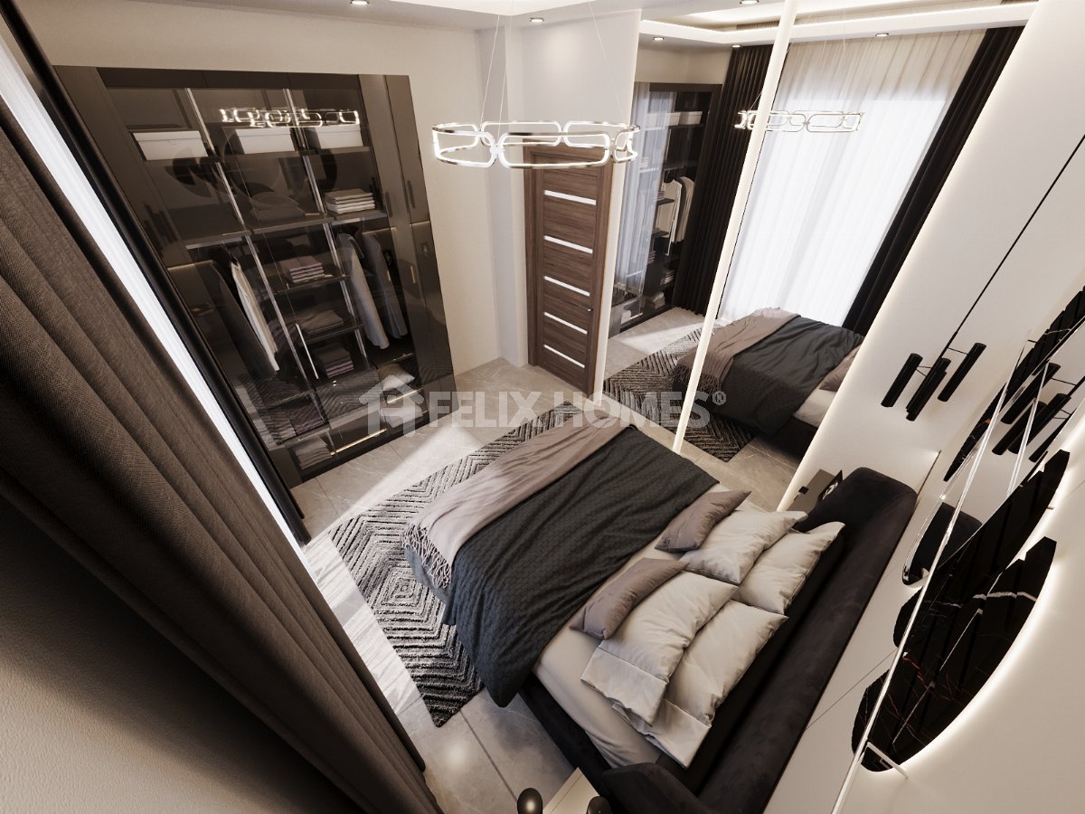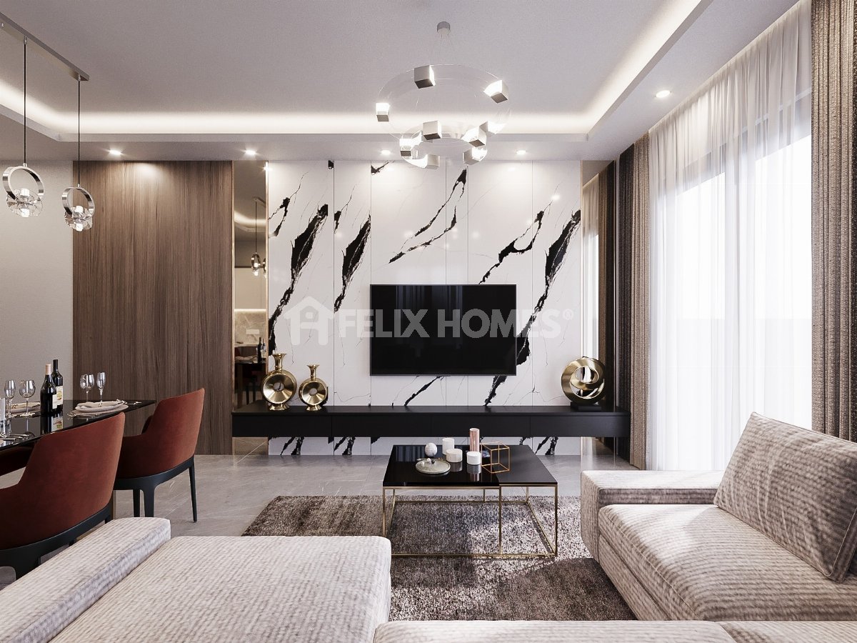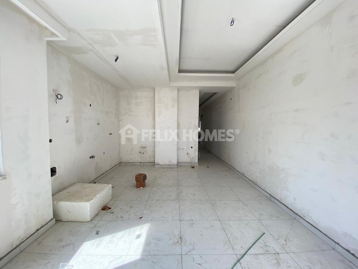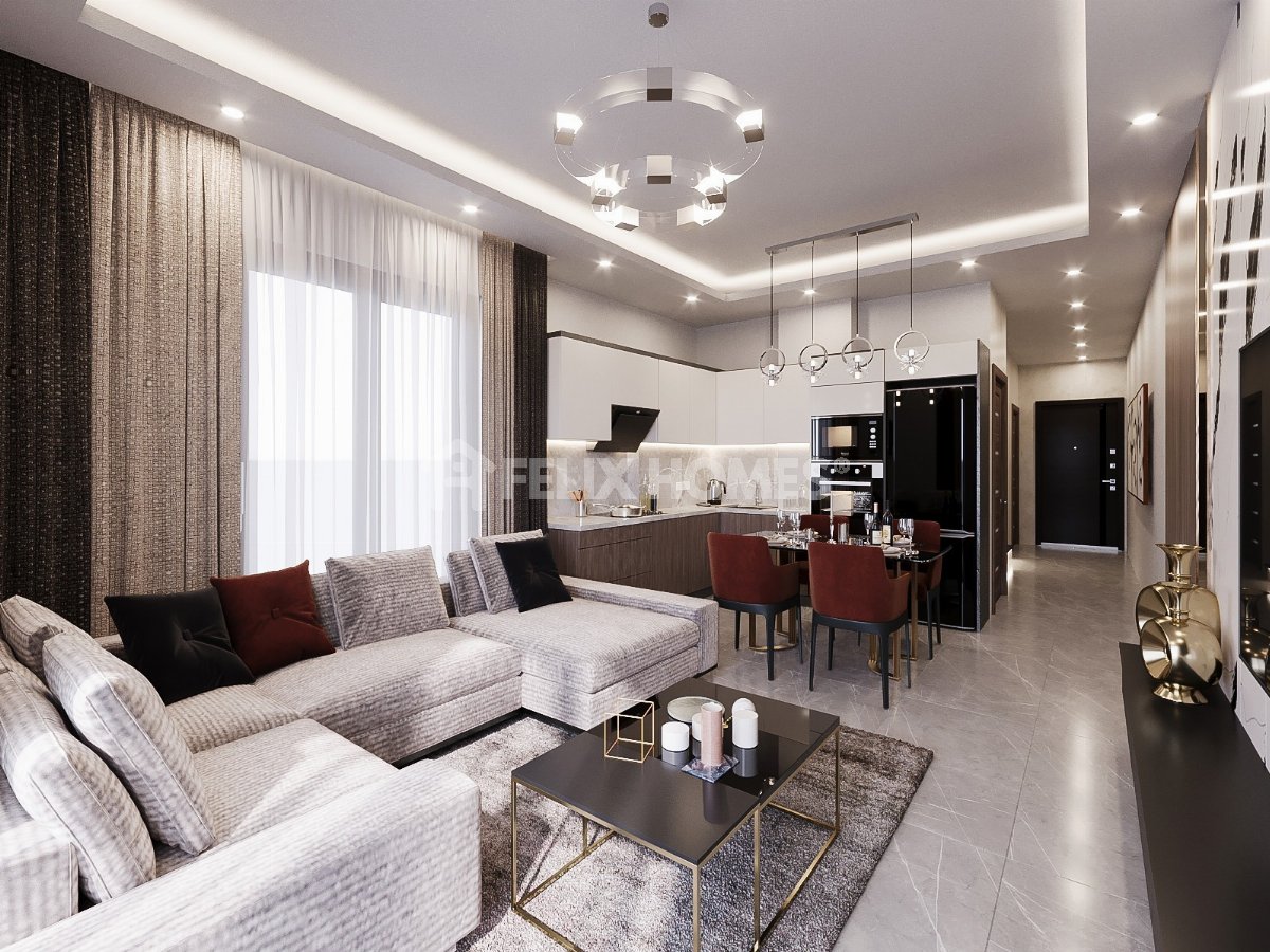 This brand new 1+1 apartment for sale is located in the popular residential area of Cikcilli, Alanya. Featuring a modern American-style open-plan kitchen, this apartment is an excellent opportunity for both living and investment.