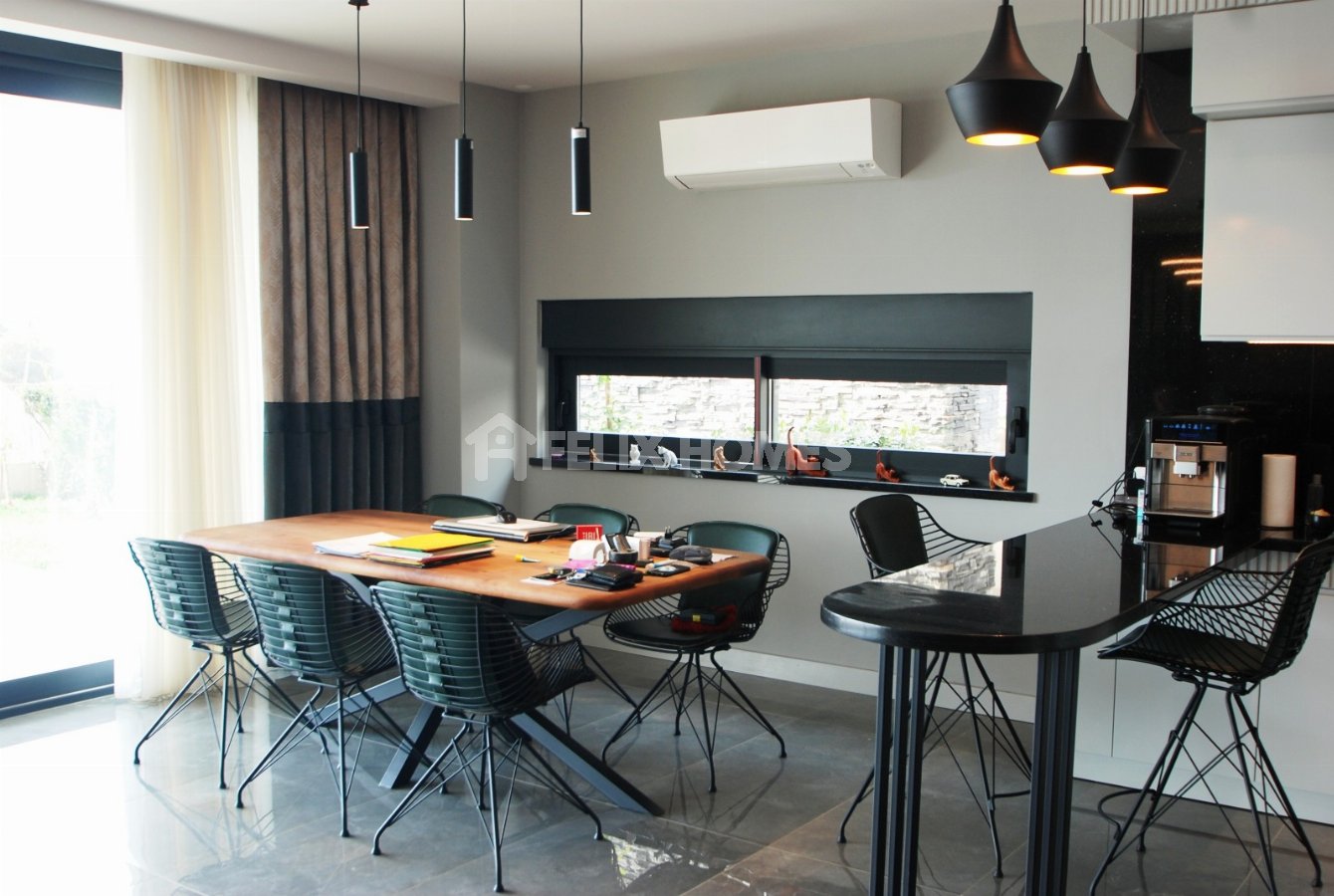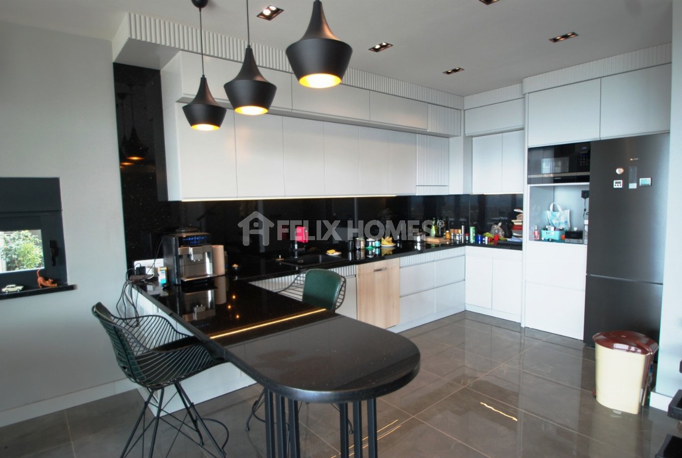 Situated in the sought-after Kargicak area, this stylish 3+1 villa in the modern Infinity Villa complex offers a perfect blend of comfort, privacy, and contemporary living. Built in 2022, the property spans 166 m² over two floors and is designed to meet the needs of both permanent living and holiday retreats.