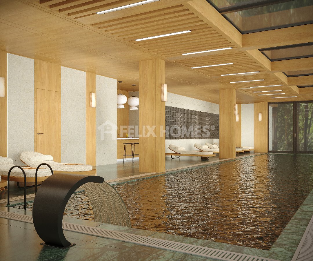 Residents will enjoy 5-star hotel-level infrastructure and amenities, including indoor and outdoor swimming pools, a traditional Turkish hamam, sauna, steam room, salt room, and shock room. The landscaped garden with walking paths creates a peaceful atmosphere, while additional facilities such as a private coworking space, laundry room, BBQ and outdoor lounge areas, children’s playground, outdoor parking, and 24-hour security with professional site management ensure maximum comfort and safety.
