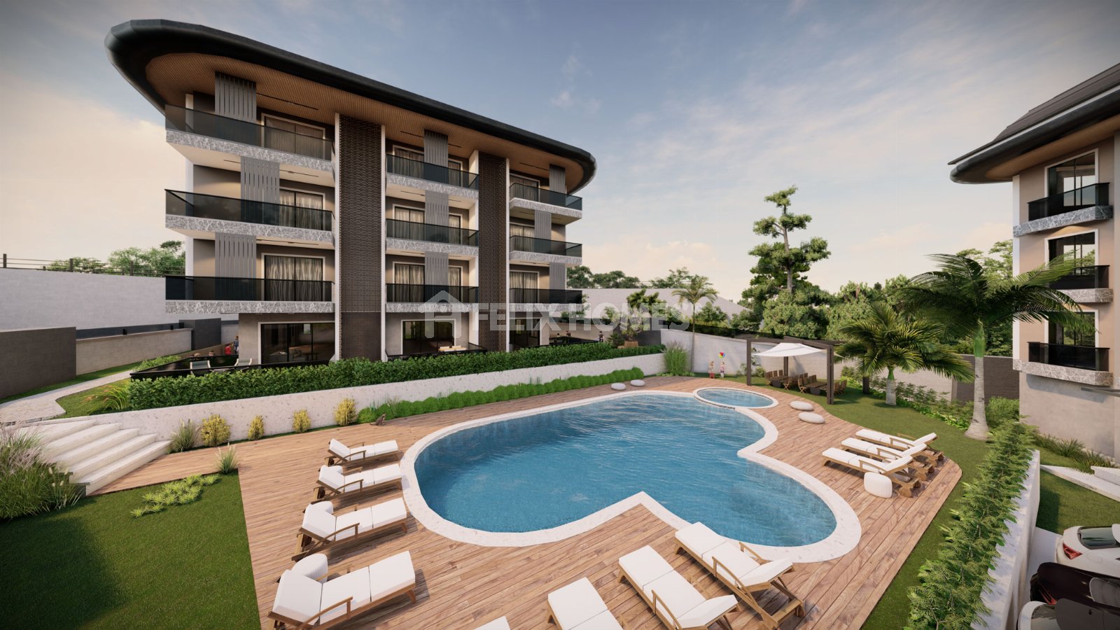 This luxury 3+1 duplex apartment for sale is located in the exclusive Zeha Deluxe complex in Büyükhasbahçe, Alanya. The property is eligible for Turkish citizenship, making it an excellent choice for both family living and long-term investment.