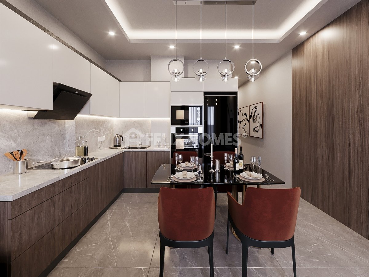 This brand new 1+1 apartment for sale is located in the popular residential area of Cikcilli, Alanya. Featuring a modern American-style open-plan kitchen, this apartment is an excellent opportunity for both living and investment.