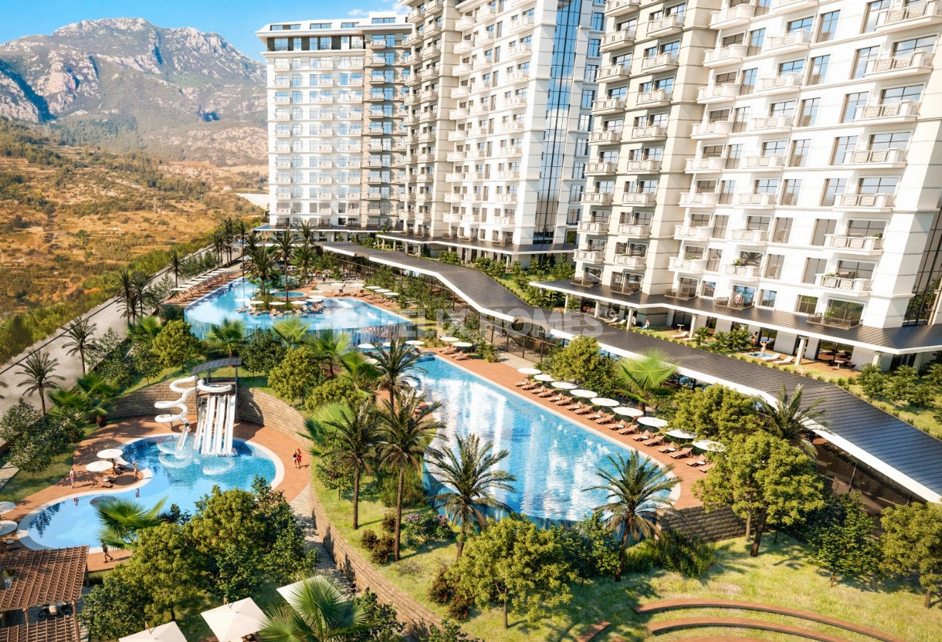 Exodus Comfort City is a modern residential complex located in the peaceful hills of Mahmutlar, Alanya, offering breathtaking mountain and city views. Designed with a 5-star resort concept, the project combines comfort, luxury, and investment value. Residents benefit from a wide range of social facilities including pools, spa, fitness, entertainment areas, and more — all set in a serene and green environment away from city noise.